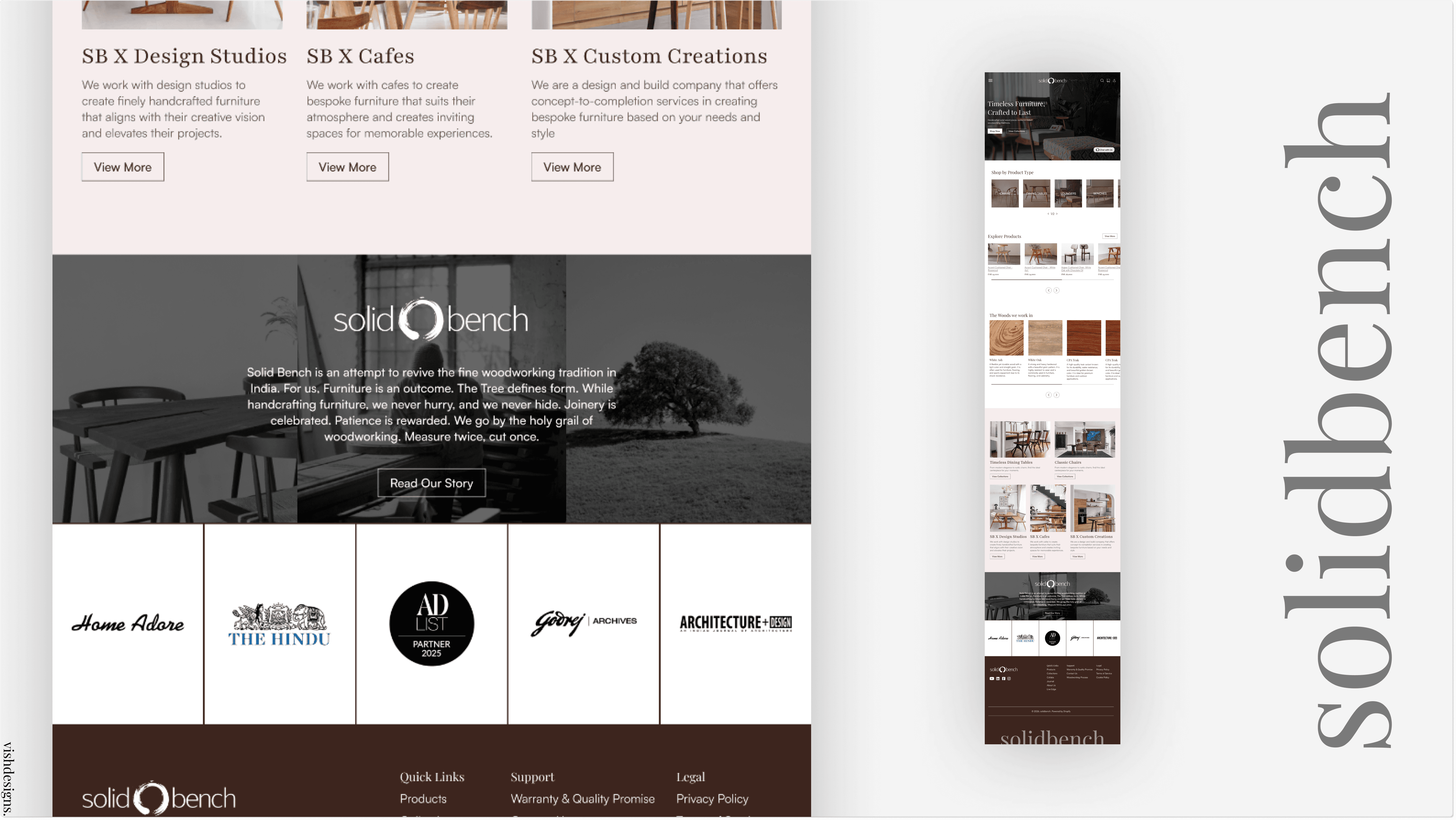 solidbench is a handcrafted furniture brand focused on solid wood furniture rooted in Indian woodworking traditions. Their existing website already had strong fundamentals: quality photography, a calm tone, and clear product categorization.